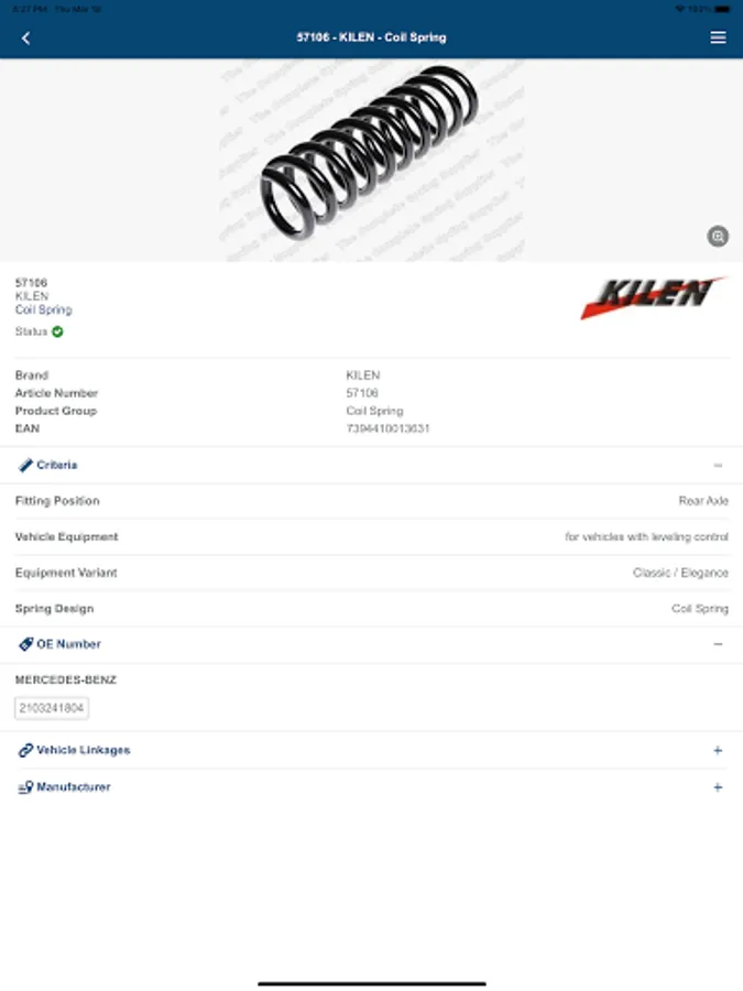 Built using extensive catalogue and cross reference data, the Kilen app offers a variety of powerful features to help motor trade professionals find the right spring every time:
