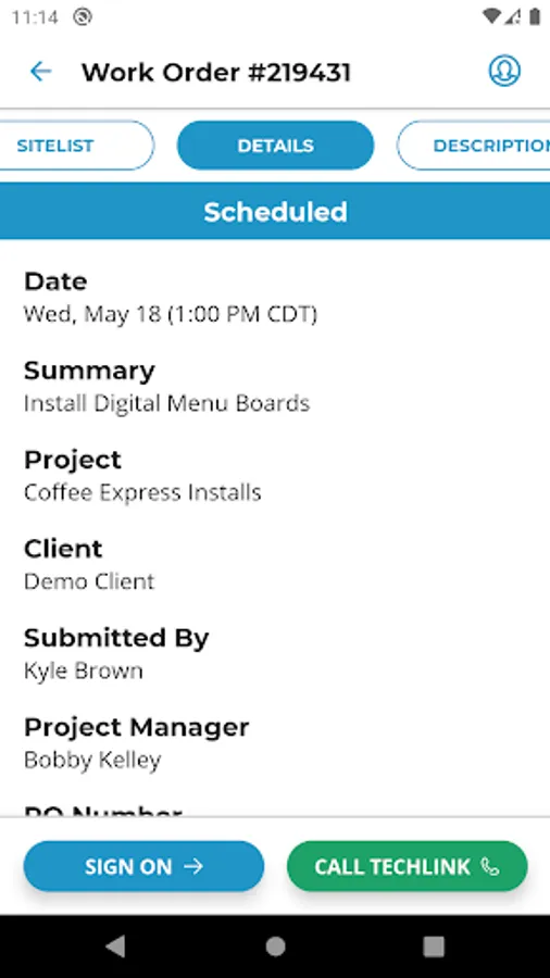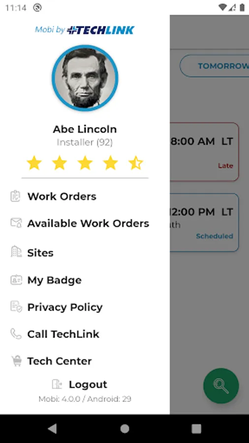 · View and access jobs scheduled with TechLink for today and the next 7 days