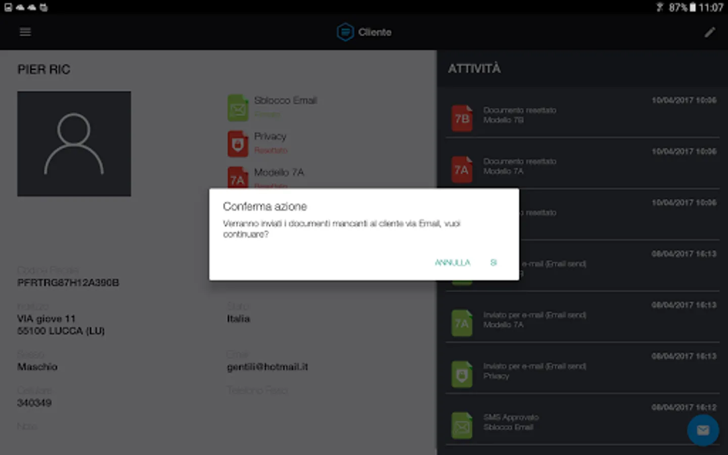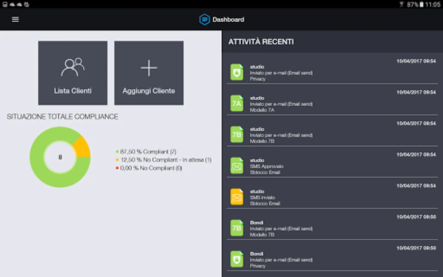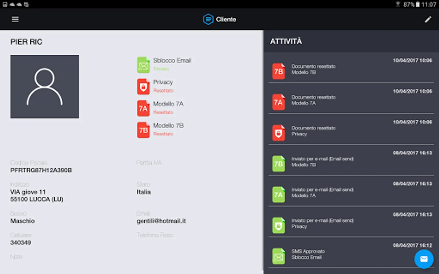 ICAPP is an app dedicated to the compliance of insurance intermediaries that allows you to send 7A / 7B models directly to customer e-mails and to collect their privacy consents.