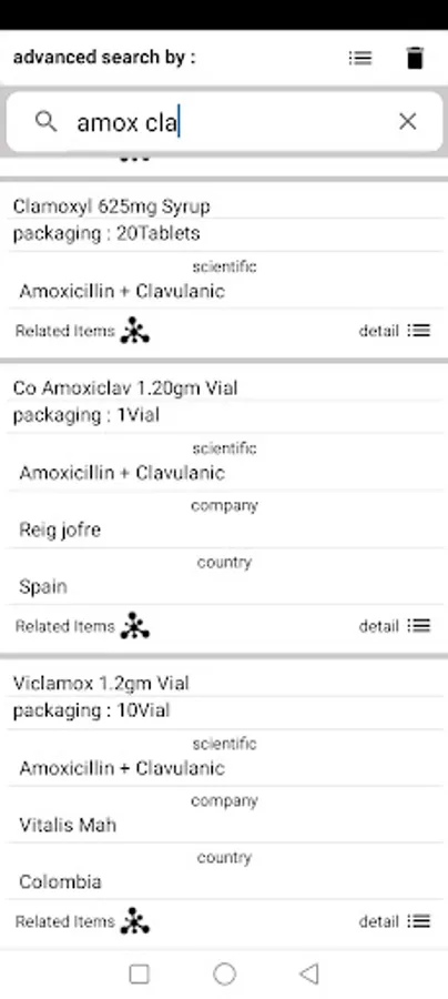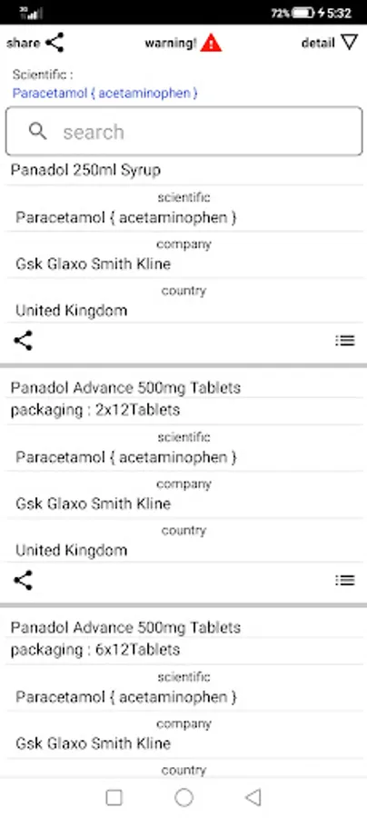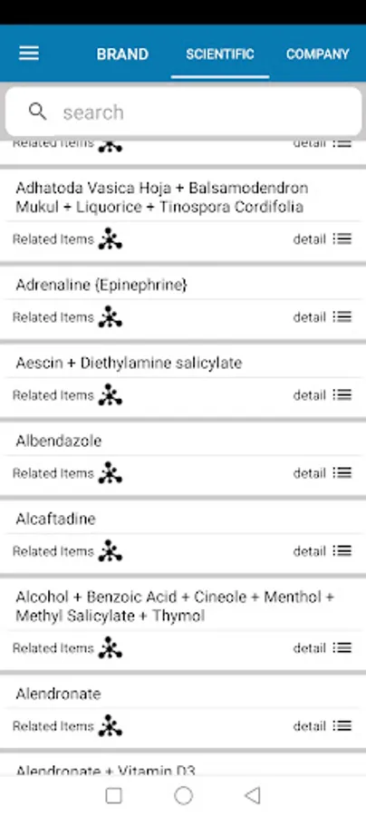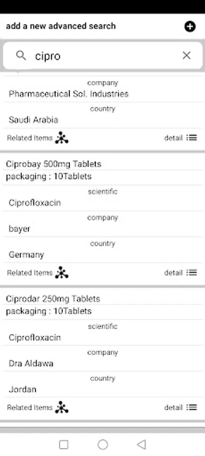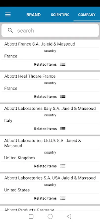 An application that contains brief information about pharmaceutical products around the world, scientific names, pharmaceutical formulations, the producing company and the country of the product.