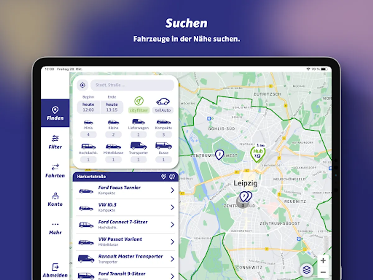teilAuto - that is car sharing for long and short trips. We offer different vehicle classes from small cars to vans. teilAuto vehicles are available at many decentralized stations for spontaneous or long-term trips. In Leipzig, the stationless cityflitzer fleet can also be used.