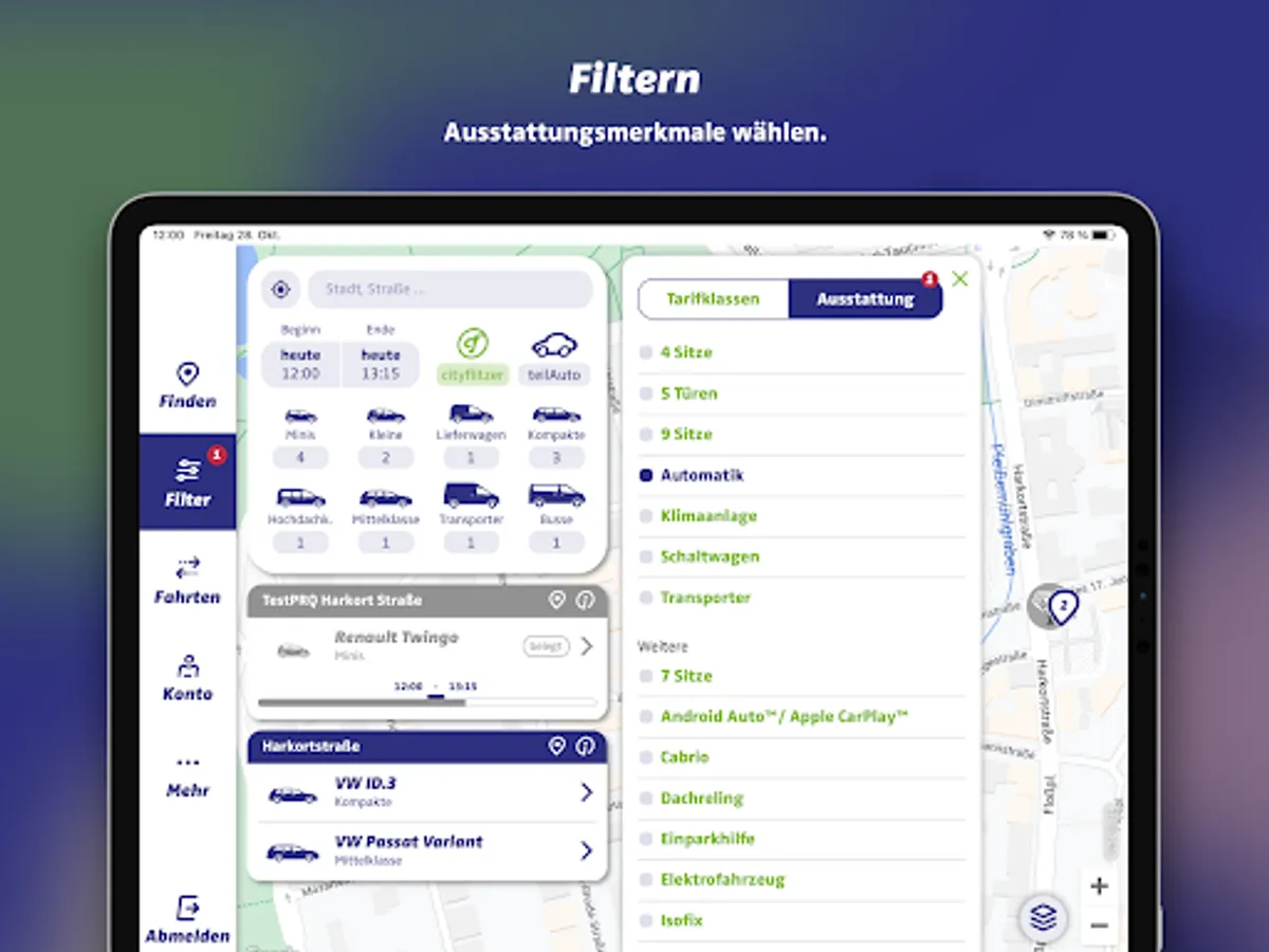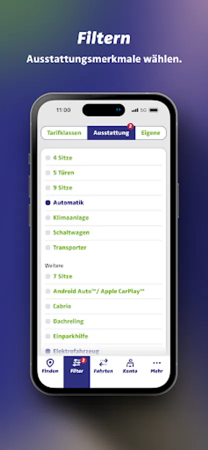 Are you looking for a specific vehicle class, a car with automatic transmission or an electric car? Use the filter function to refine your search with just a few clicks.