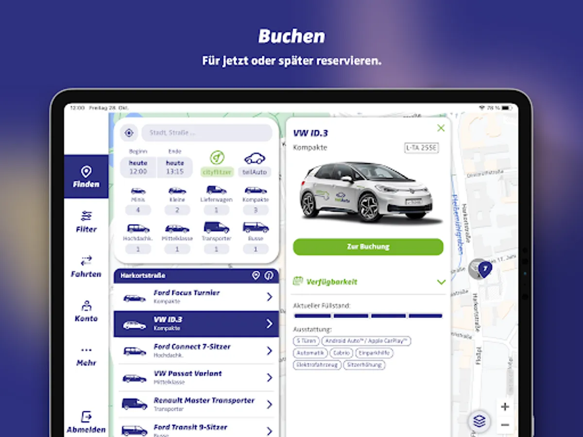 With theteilAuto app you can find the right car sharing vehicle in your area and book and open it directly. In addition, bookings can be extended, shortened or cancelled. Here is an overview of all important functions: