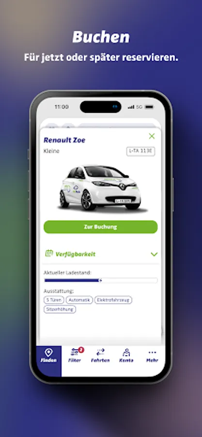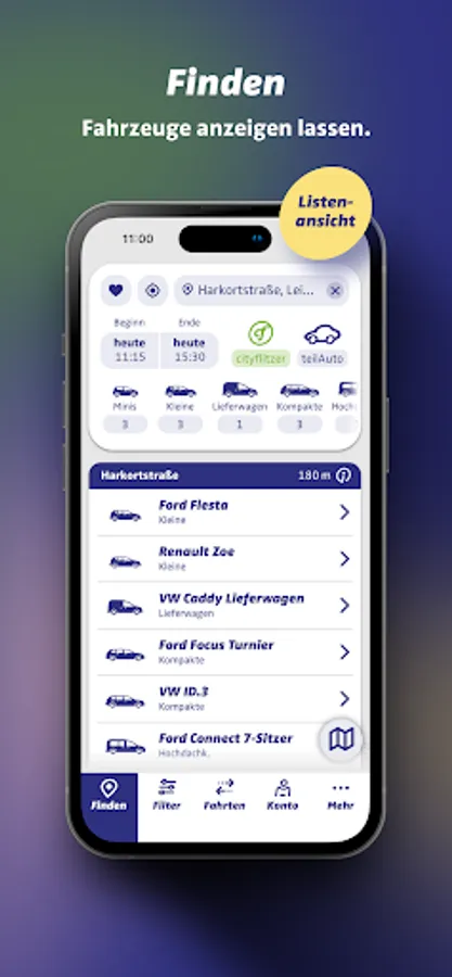 You can find cars conveniently and easily by searching for a location or entering an address. Cars in your area can be displayed on the map or as a list view.
