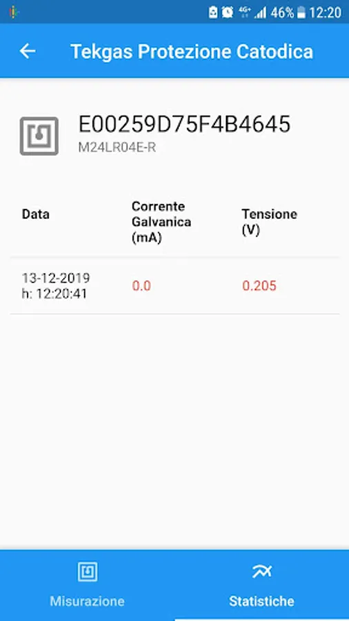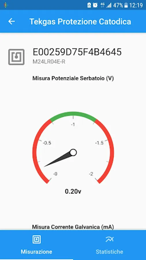 Through the NFC ® connection interface, the application instantly reads the values detected by the MPCat / A cathodic protection box supplied with the LPG tanks and displays them in convenient indicators.