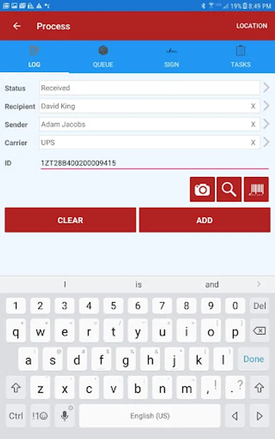1. Receive and log packages when they arrive using your iPhone or iPad. Scan the barcode using your camera or a Bluetooth scanner.