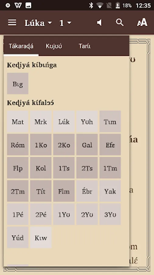 This app contains the translation of the New Testament and Genesis into the Tem language, one of the first and very few sizable books published in Tem. The New Testament contains 27 shorter books, each with their own introduction. Genesis is the first of five books contained in the Tawrat, which is attributed to the prophet Moses.