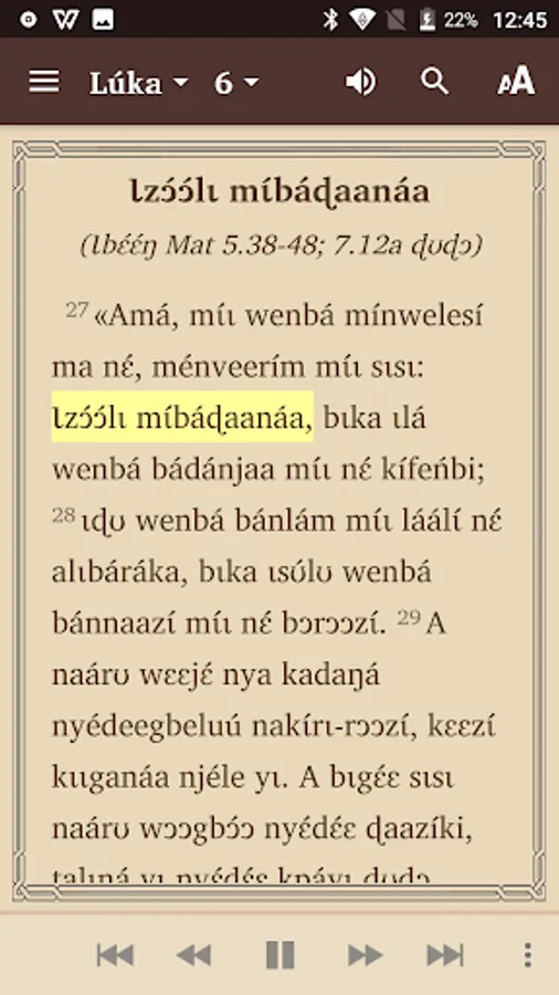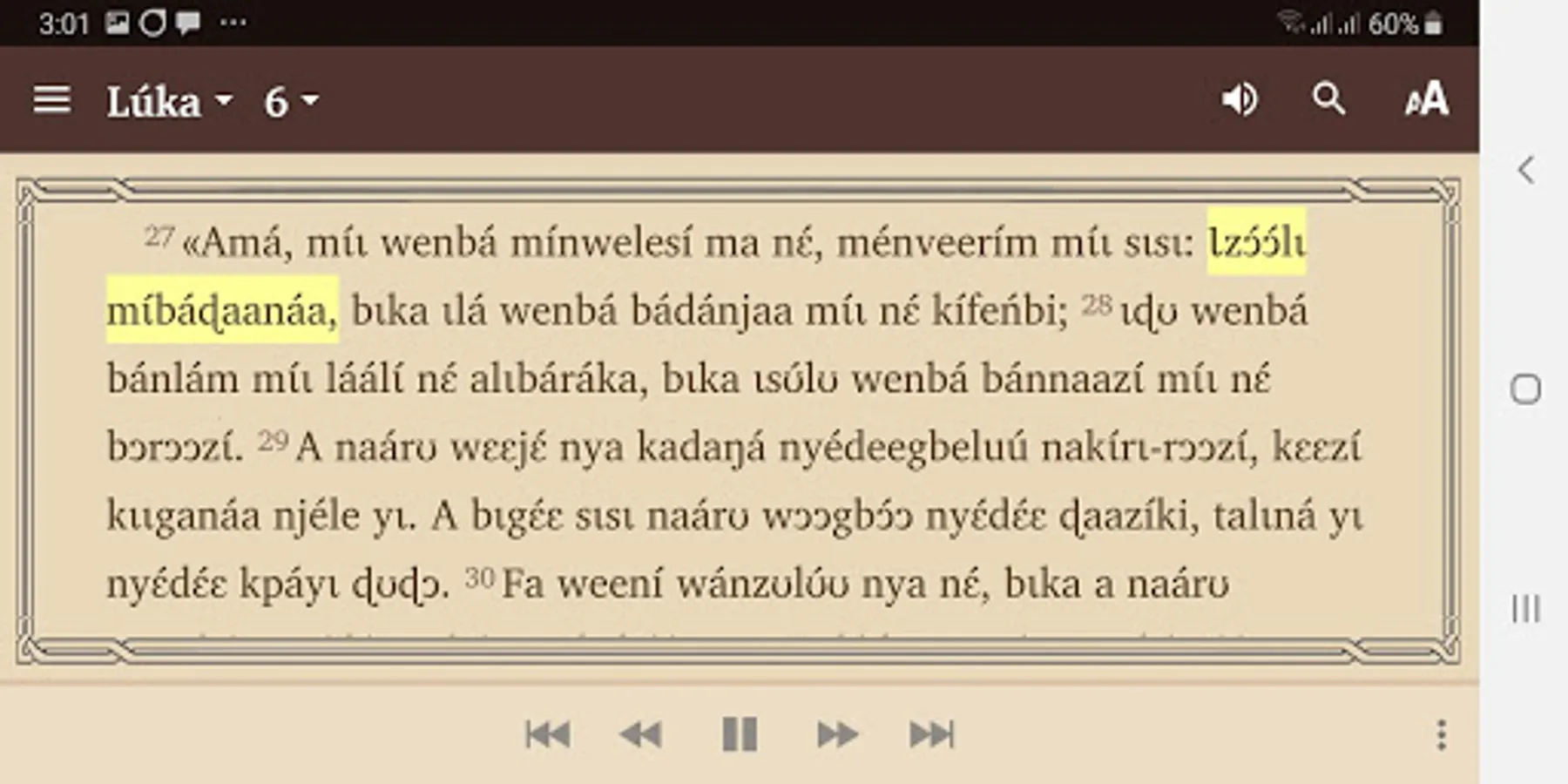 For new readers, this version of the app contains audio recordings for Genesis chapters 1-15, as well as Luke chapters 6-12. For these portions you can click the icon at the top to listen, and it will highlight the words so you can learn to read on your own, while listening.
