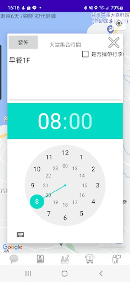 The meeting time and place announced by the team leader will be broadcast in the app of the members. You can see the time remaining until the meeting and the distance from the current location to the meeting point at any time.