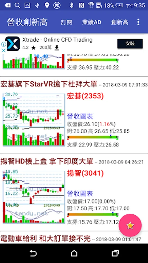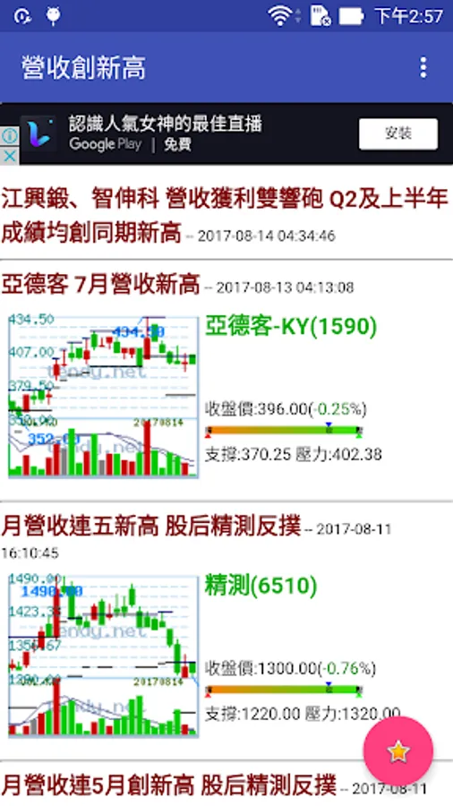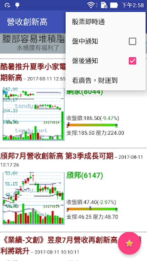 所以這支app會在營收創新高的新聞旁,放上該檔個股的k線圖,方便掌握進場時機