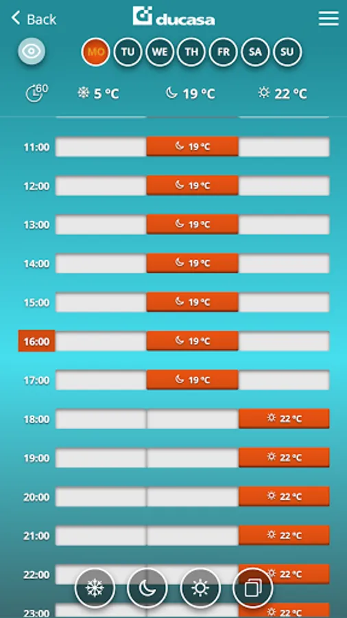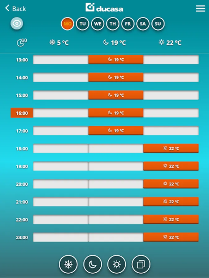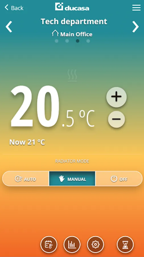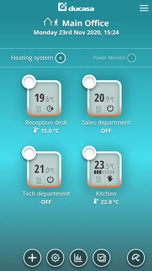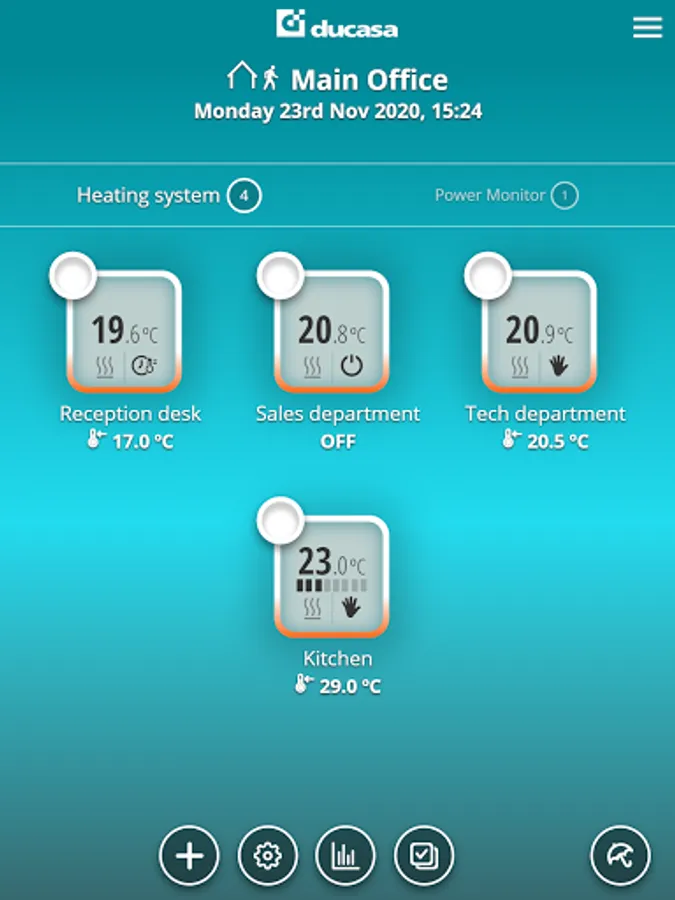 The “ducaheat” application allows you to control your heating system from anywhere and at any time via internet connection. You can turn on, turn off or modify your devices (radiators, energy meter) in all your homes from the same account.