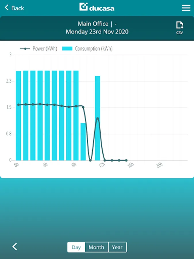 • Complete STATISTICS of electricity consumption and temperature of the rooms available by day, month and year.