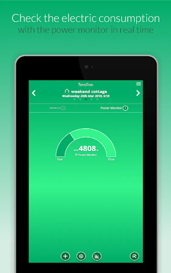 • Sliding between screens to display the different devices (radiators or power monitor).