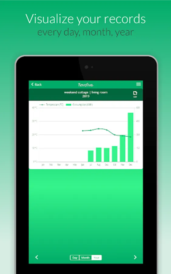 • Complete STATISTICS of electrical consumption and temperature of the stays available per day, month and year.