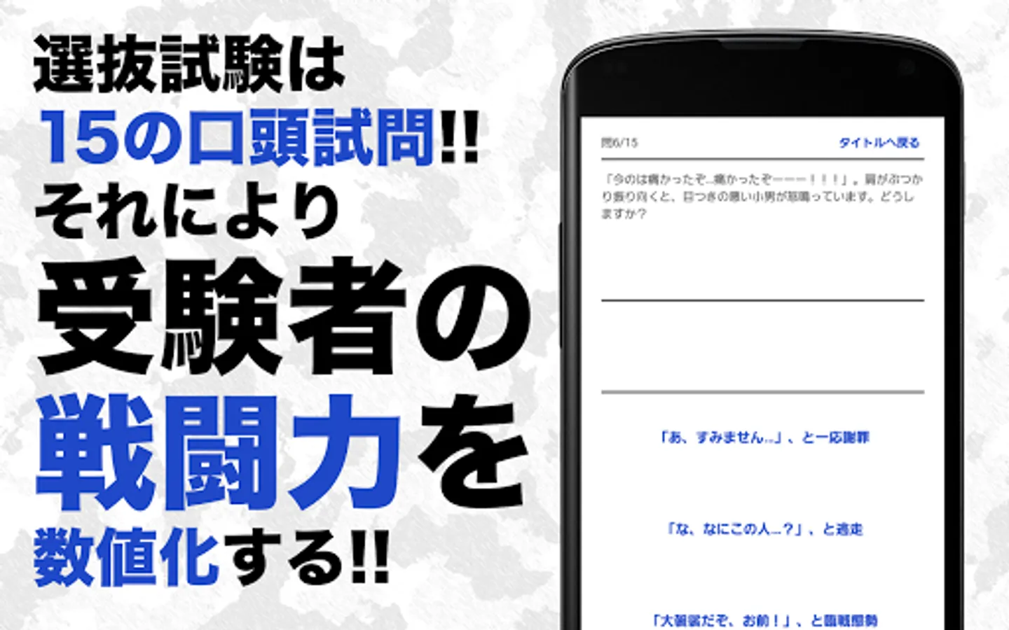 In this application, the 15 questions of questions and psychological tests that will appear on the exam at random, is a diagnostic application as a party game to play in and then quantify the combat force of the respondents !! casual !!
