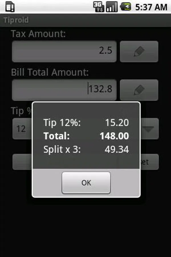 Never be left wondering how much you should tip your server at a restaurant. Taxes are always excluded from tip calculation. The total is nicely rounded automatically. You can even go dutch and split the tab.
