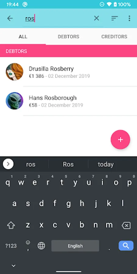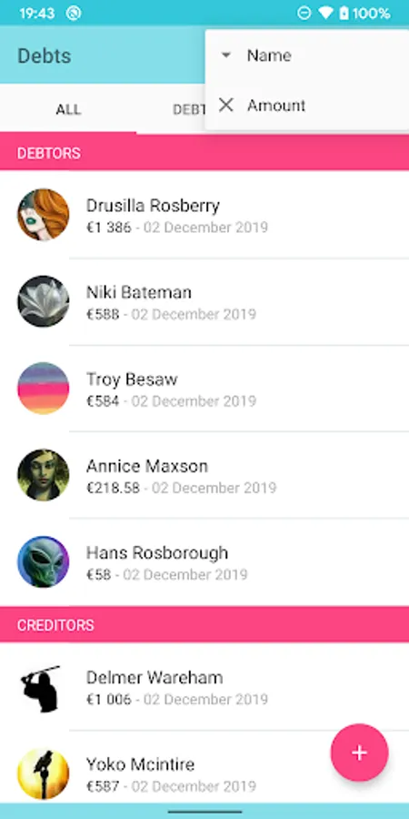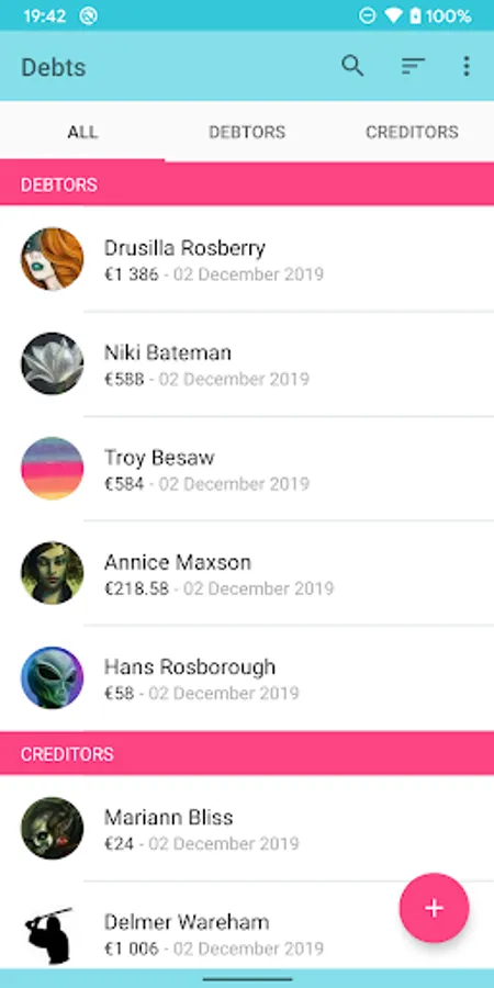 * 3 lists (all / debtors / creditors)