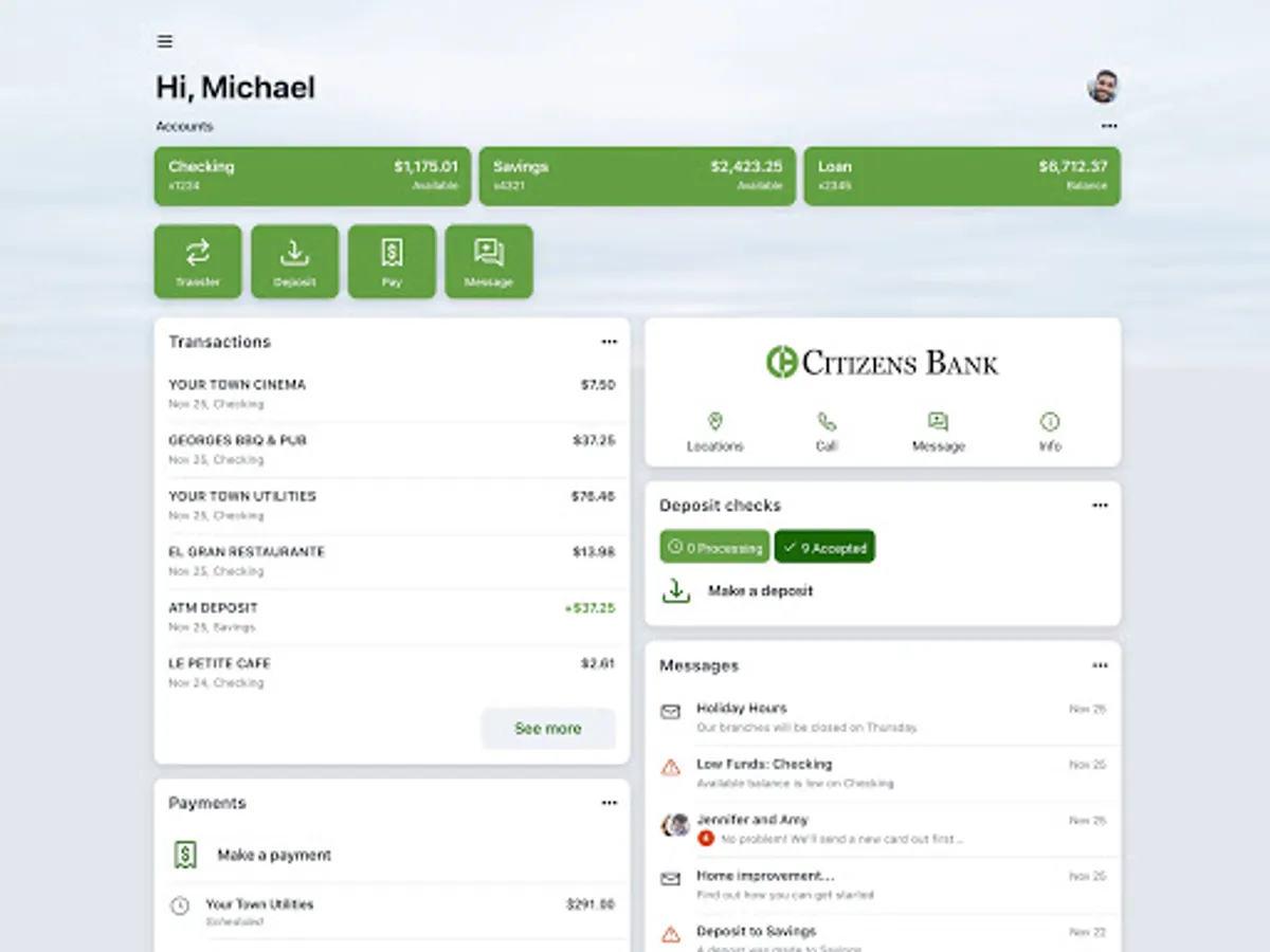 The Citizens Bank Now is your personal financial advocate that gives you the ability to aggregate all of your financial accounts, including accounts from other banks and credit unions, into a single view. It’s fast, secure and makes life easier by empowering you with the tools you need to manage your finances.