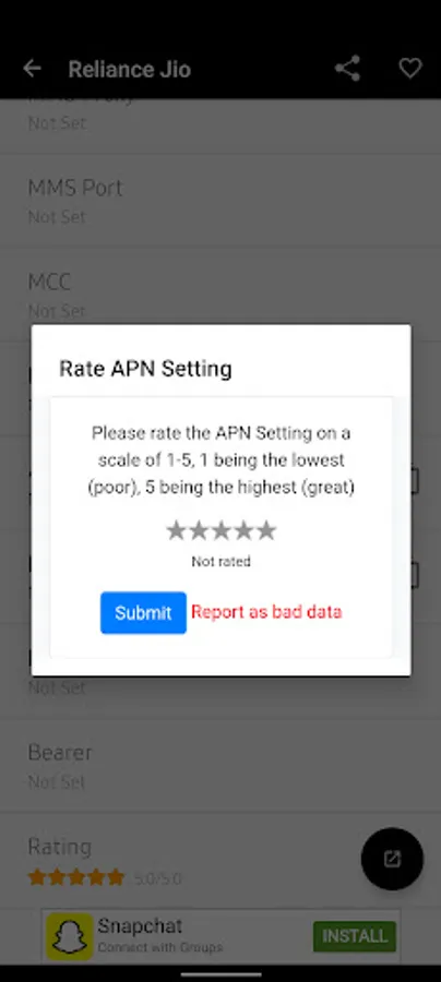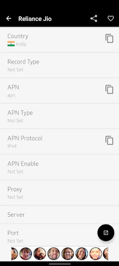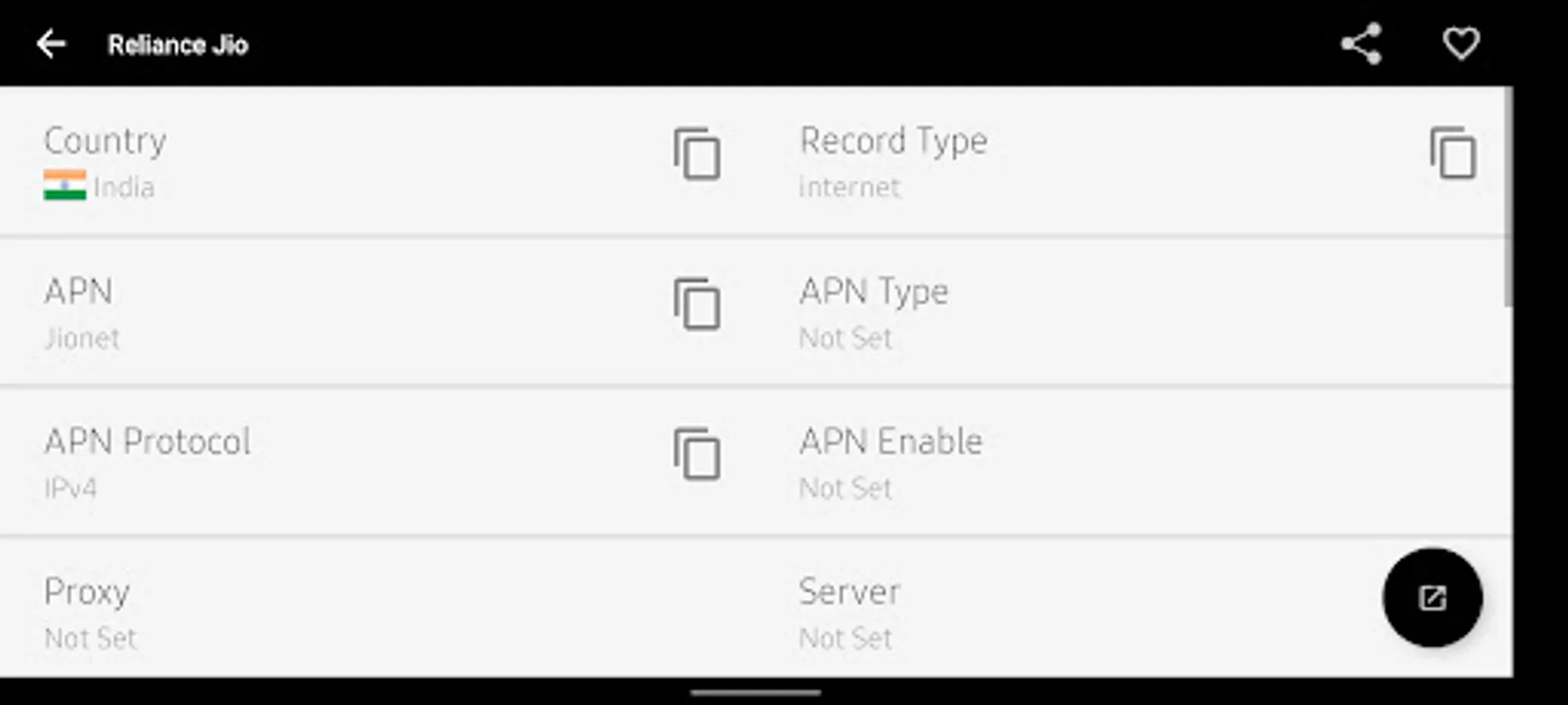 3. Ability to APN Setting as a favorite and share socially OR with different applications using a context menu