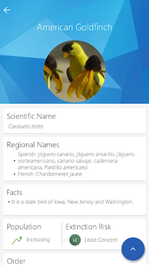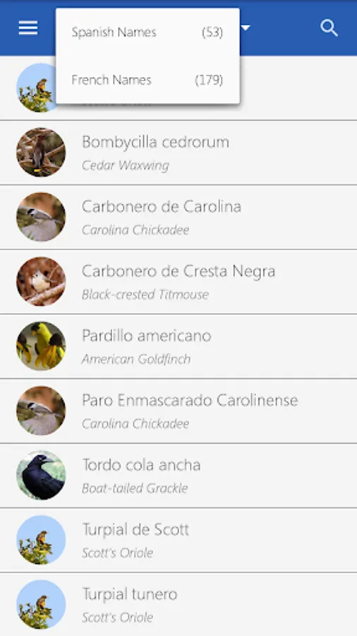 "American Birds" app is the application which displays bird names in regional languages (vernacular names) such as Spanish and French. "American Birds" app works in offline mode and can be moved to SD Card. "American Birds" app is very easy to use as a "field guide" at birding sites as it has various information like bird's relative size, sexual differences, habitat, food, interesting facts, nesting period, etc. captured for each bird.