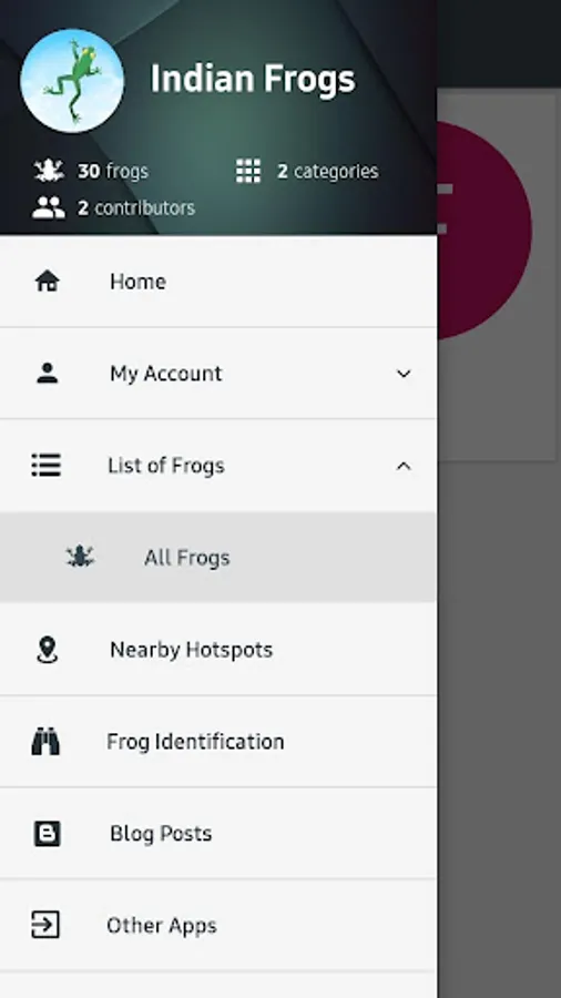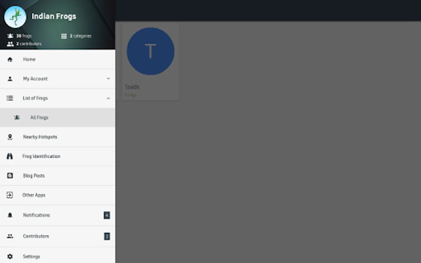 "Indian Frogs" app is the only application available on android market which displays variety of frogs found in India. "Indian Frogs" app works in offline mode and can be moved to SD Card. With great user interface, "Indian Frogs" app is very easy to use as a "field guide" as well.