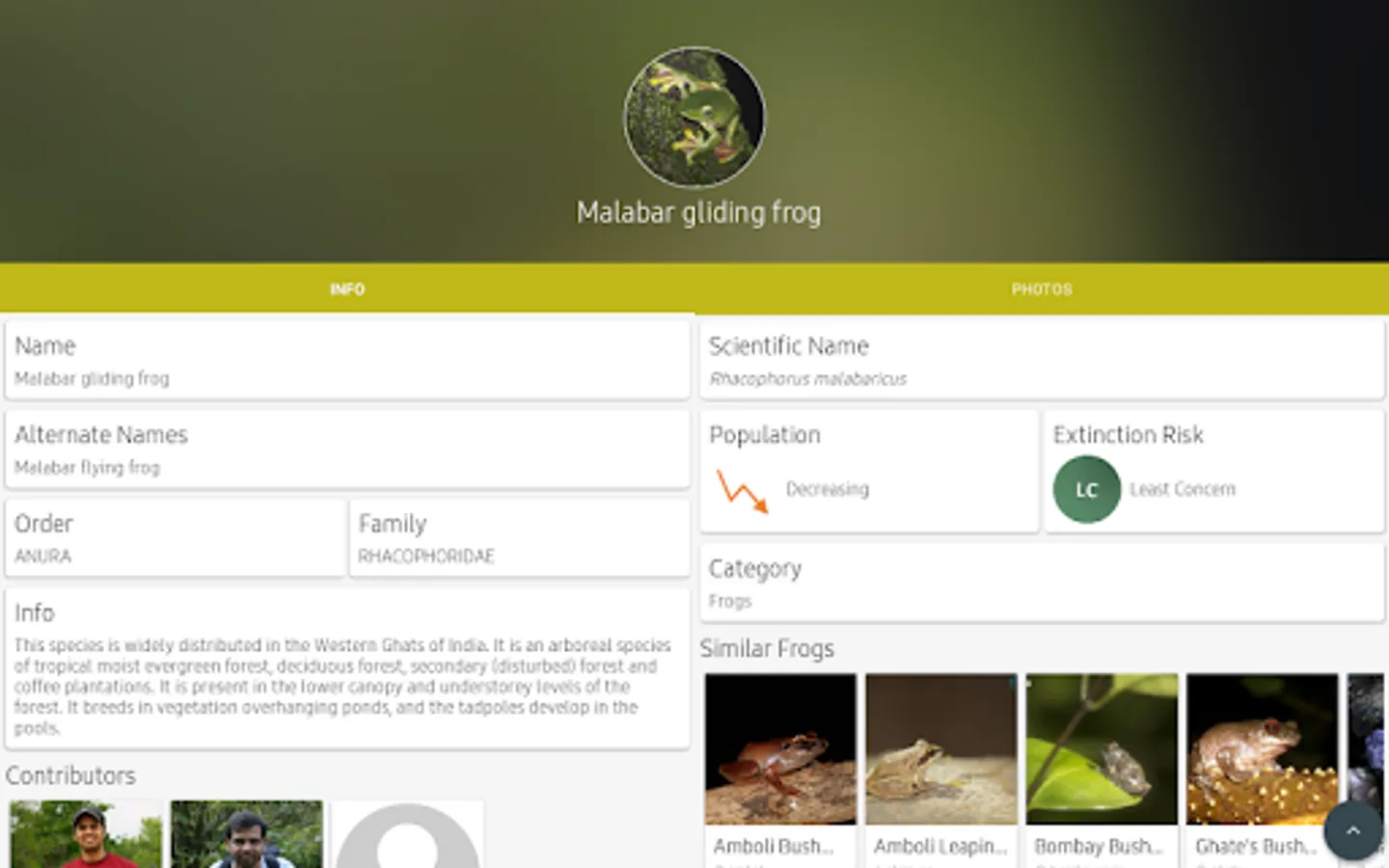 "Indian Frogs" app as name suggests - covers most of the common species of frogs found in India. Some key features of "Indian Frogs" app include: