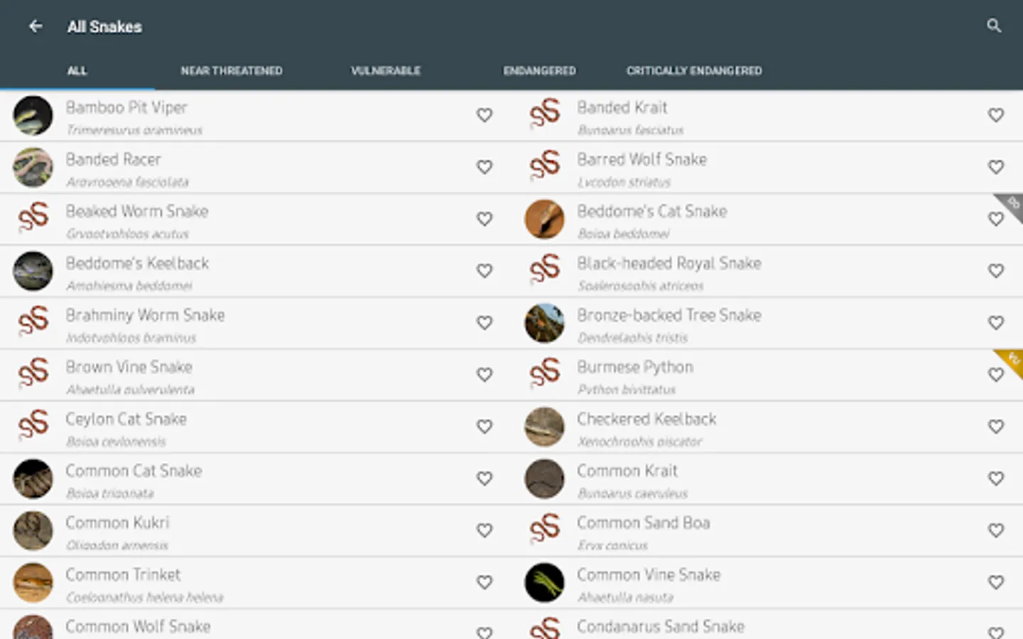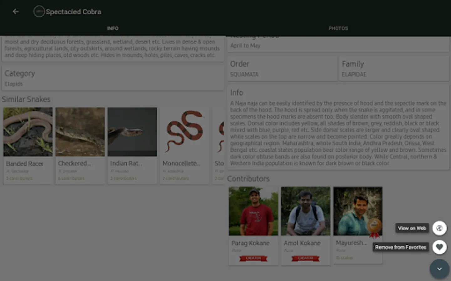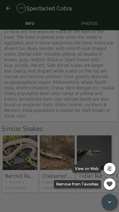 "Indian Snakes" app as name suggests - covers most of the common species of snakes found in India. Some key features of "Indian Snakes" app include: