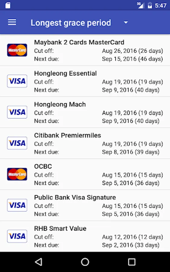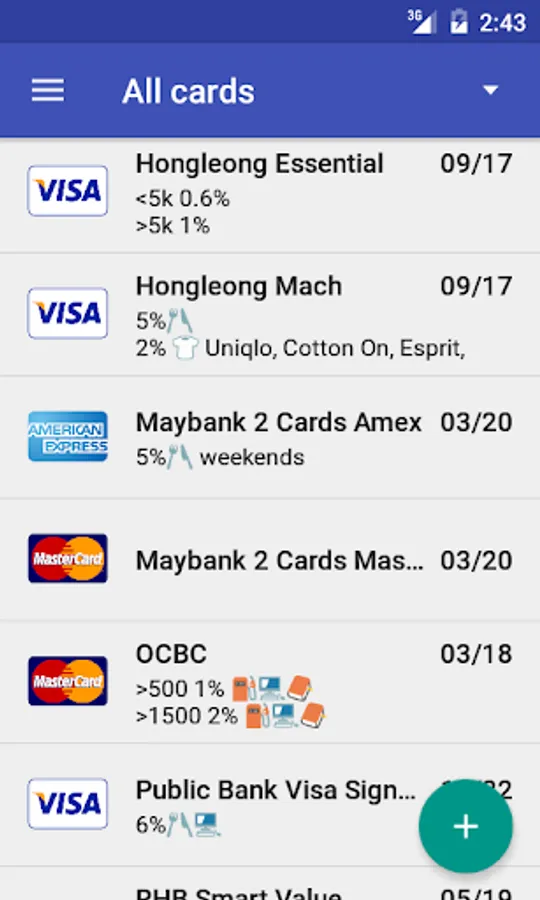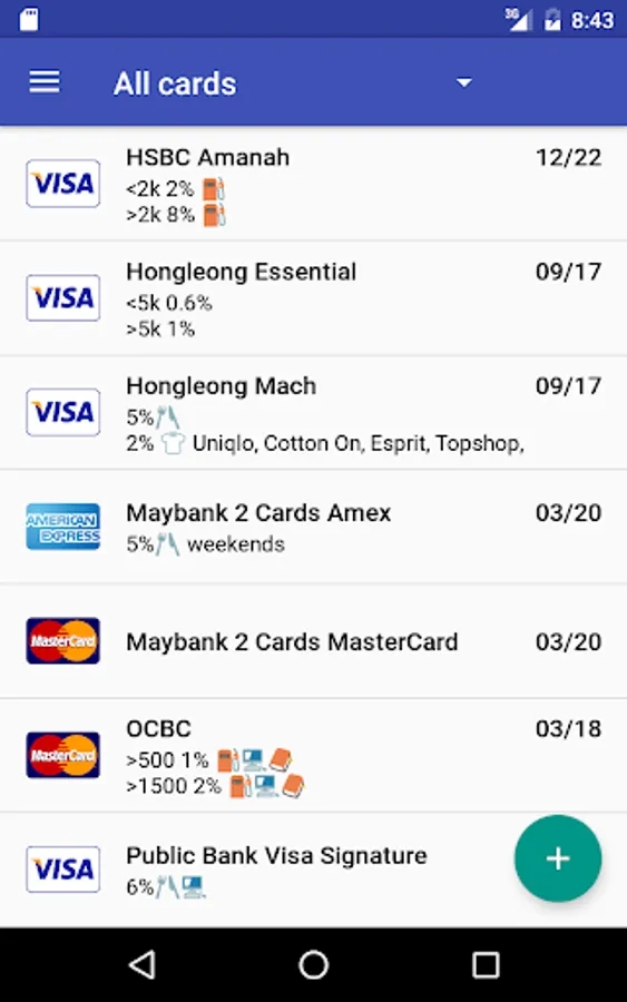 Take control of your credit cards with this offline credit card manager (no need to create account or login online).