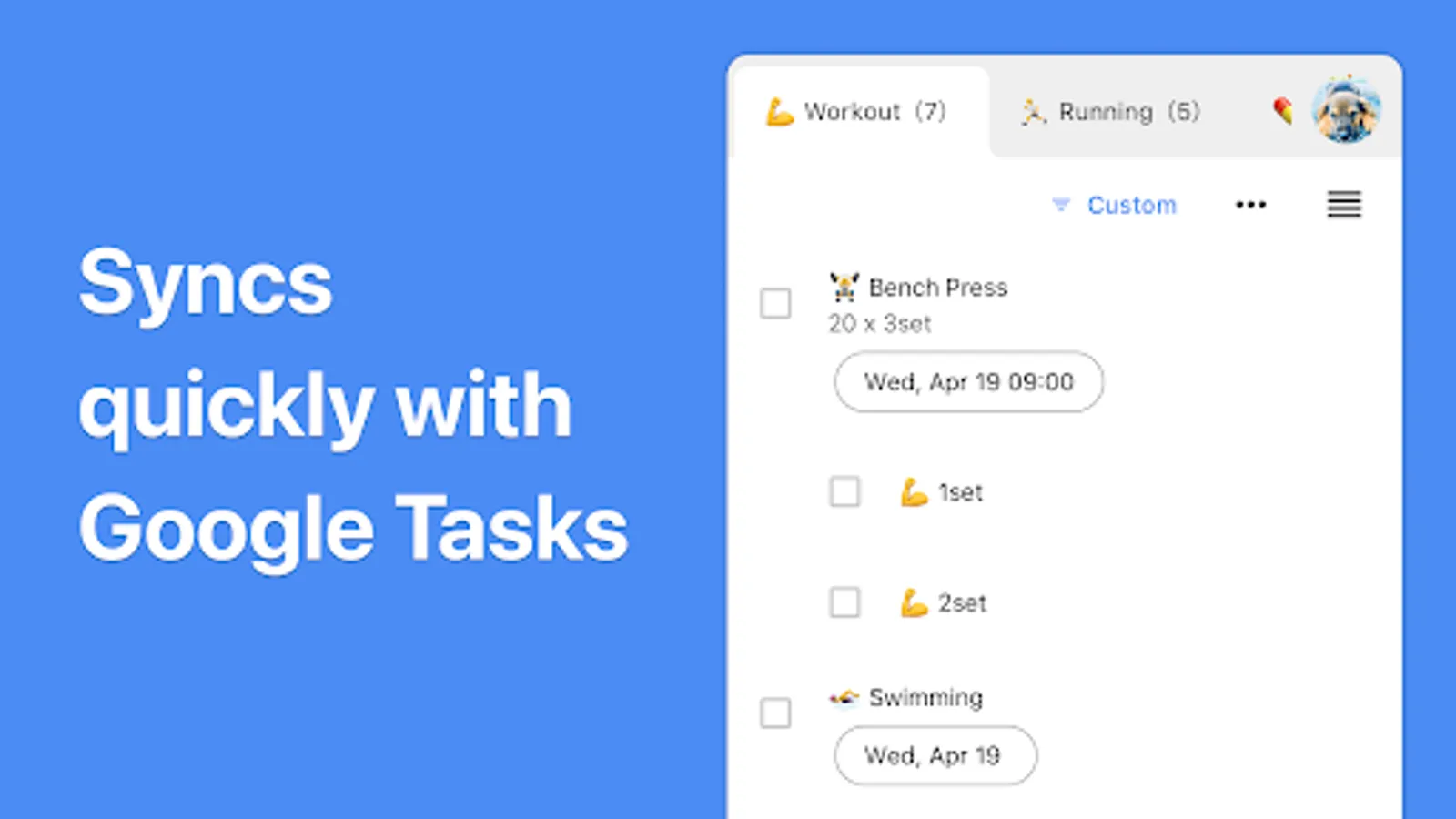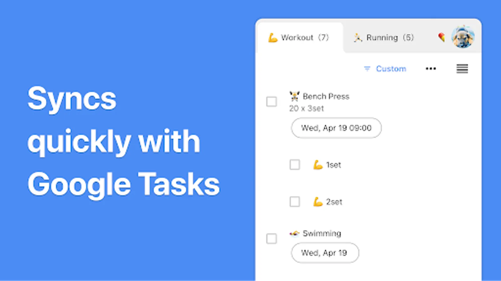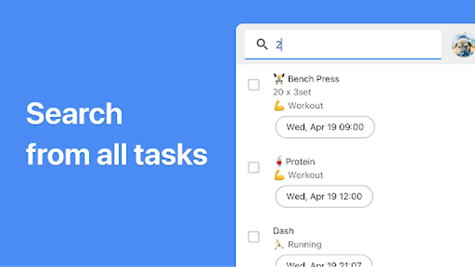 Task display of "today", "tomorrow", "the day after tomorrow", "overdue", "all", global search, alphabetical or date sorting, synchronization with desktop apps, multi-account support!
