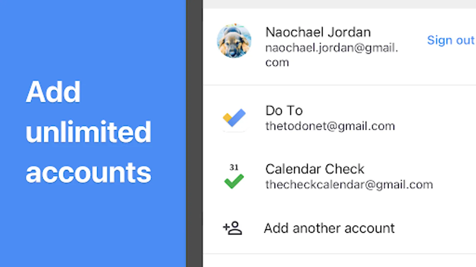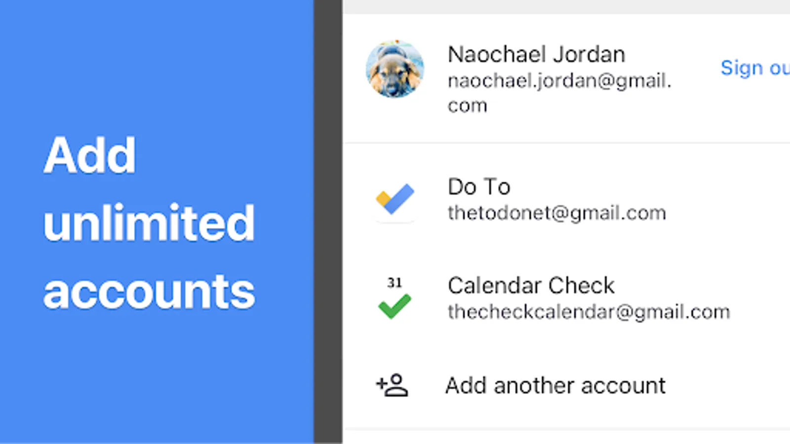 Add an unlimited number of accounts and quickly switch between them with one click!