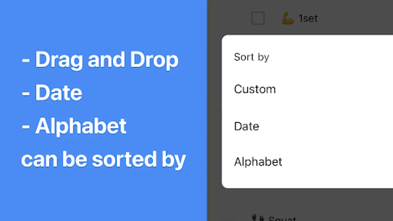 You can sort by "drag & drop", "date order", and "alphabetical order"!
