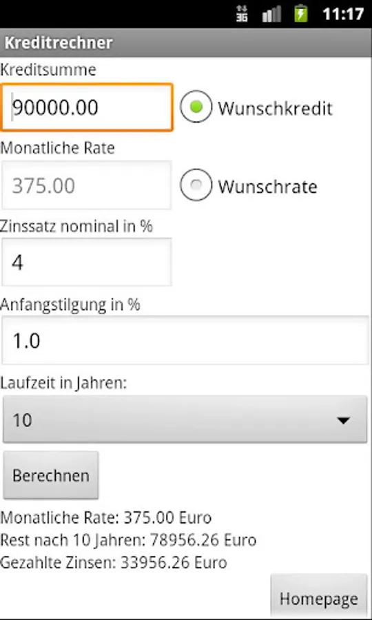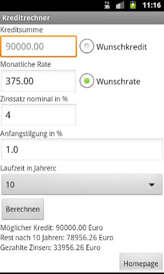 Kreditrechner Screenshots