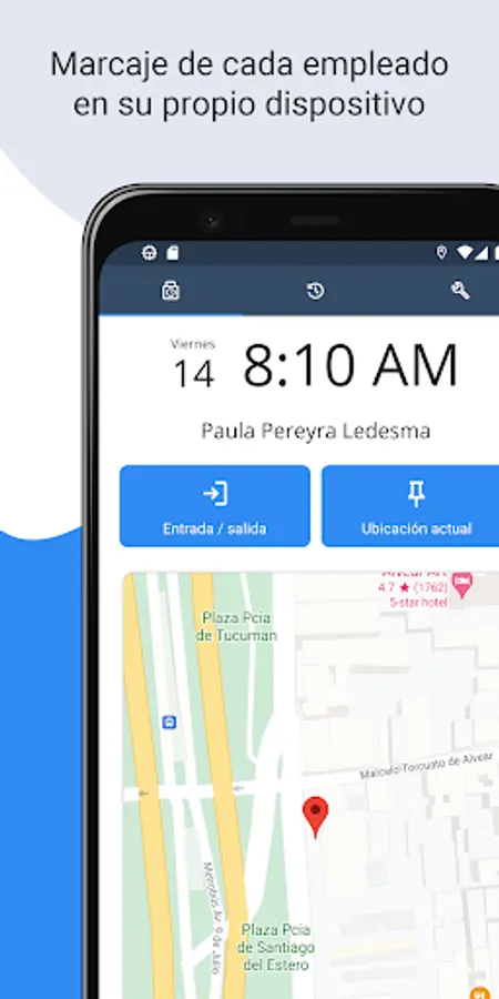 Employees use this application to announce that they start or end their workday, and the date, time and geographic location information of each record is sent online for consultation through the timemsmart.net