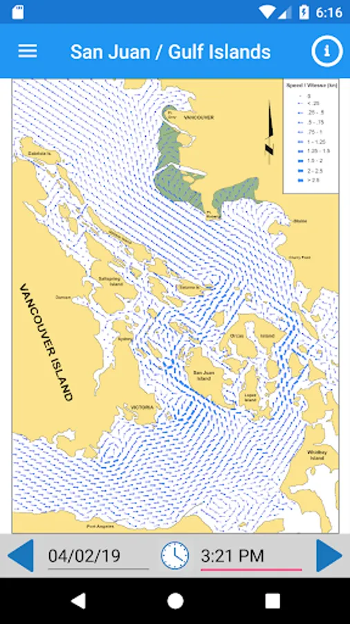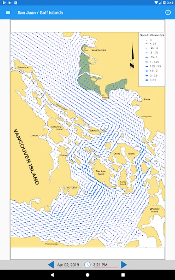 The PNW Current Atlas brings a fast and easy way to view Pacific Northwest current prediction charts for the Juan de Fuca Strait / Strait of Georgia regions on your mobile device. This includes complete coverage of the US San Juan Islands, the Canadian Gulf Islands, and the Eastern Juan de Fuca Strait and more.