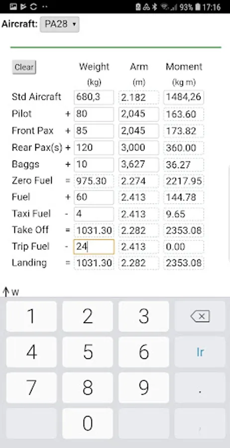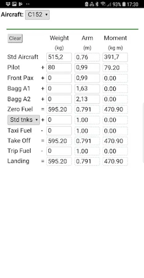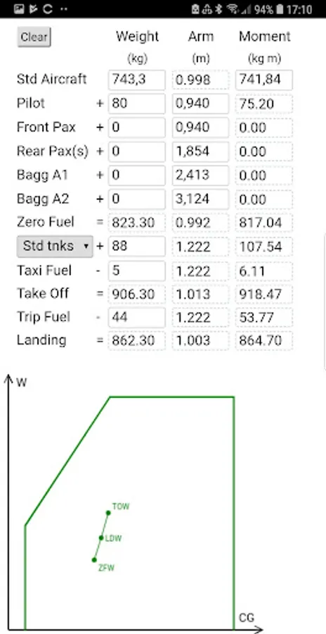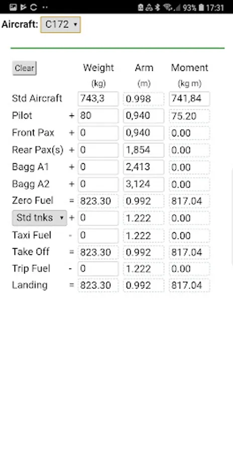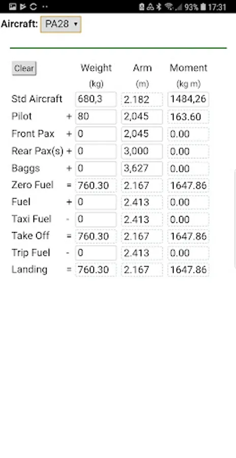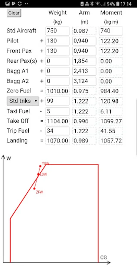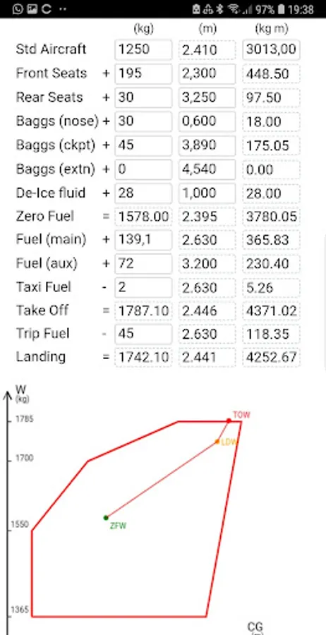 Just enter the various weight values for the pilot, passenger(s), baggage and fuel.
