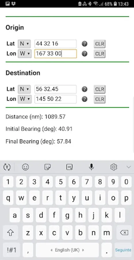 Determines the distance and the initial and the final bearings of a great circle track (orthodrome) connecting two locations, each defined by geographic coordinates.