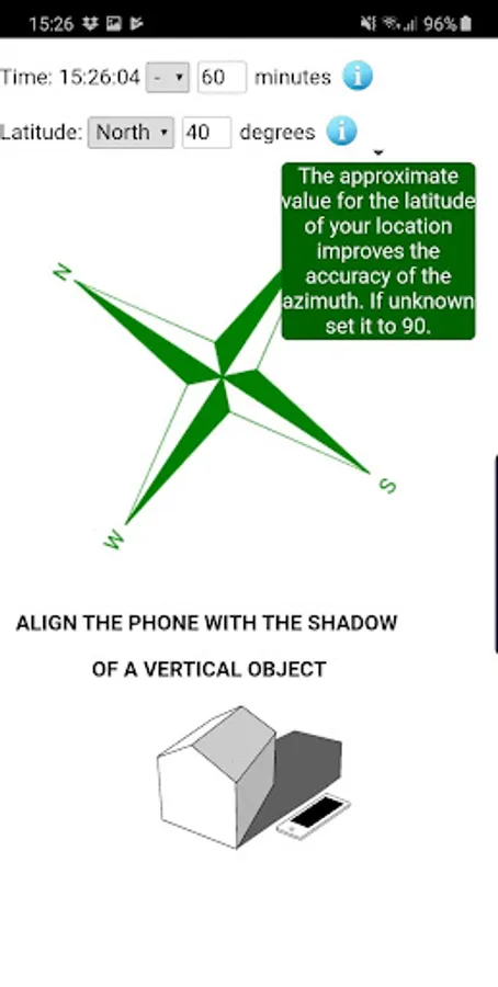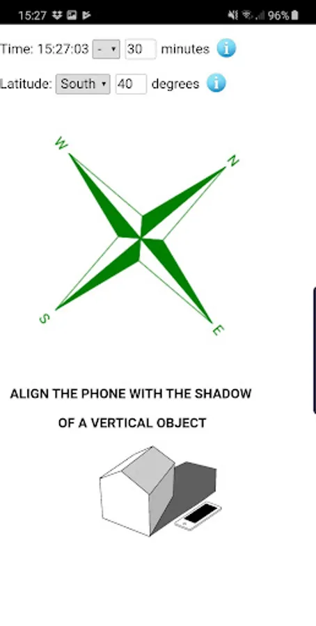 This App indicates True North when the phone is properly aligned with the shadow of a vertical object.