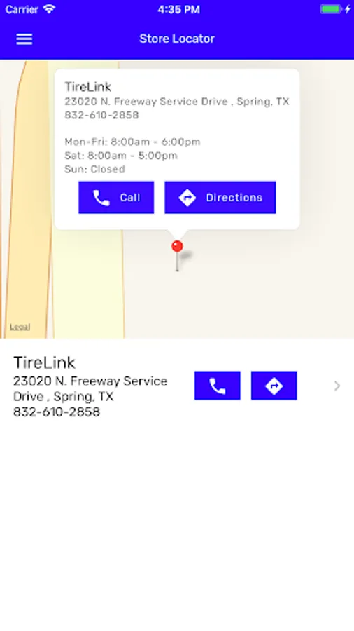 • Store locator with phone numbers and driving directions
