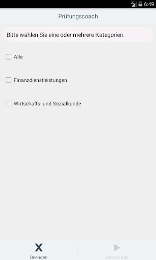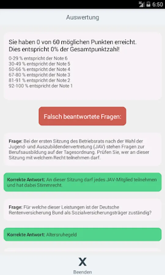 After logging in, you can get started and answer 360 quiz questions about the test material. Are per quiz passage ten random questions from the fields
