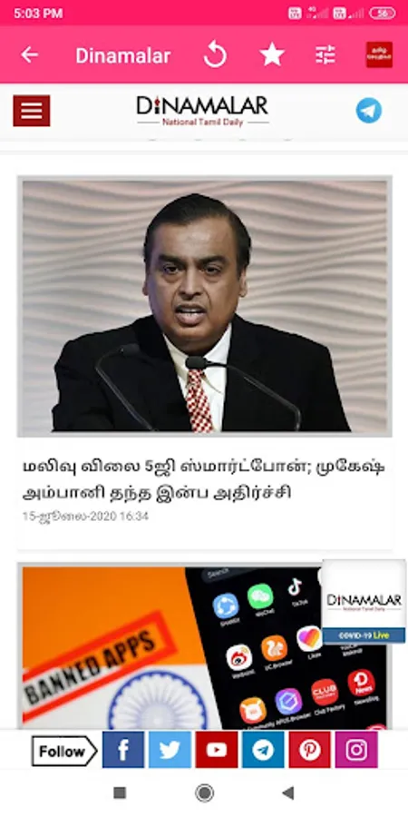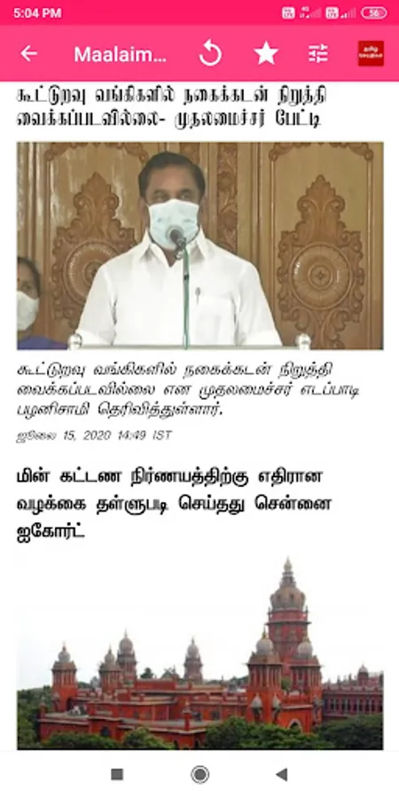 Read Latest news,district news,Election Updates,sports news,entertainment from the most popular Tamil newspapers using this single app Daily Tamil news papers at one click.