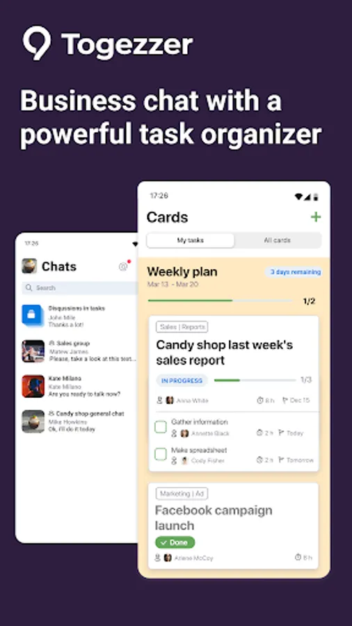 Workspace Chat: Communicate with your team using our integrated work chat, available for voice or text messages, right within the app. Each task card has its own chat for easy discussion and collaboration.