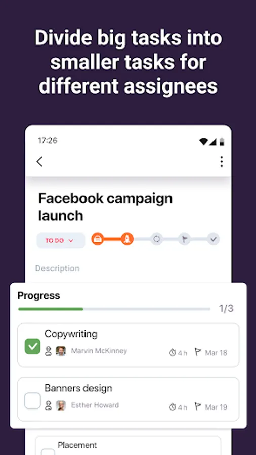 Progress Tracking: Our progress management feature helps you set and track goals, letting you know what to focus on and when. Compare the progress of your tasks against the project timeline on the Kanban board and manage your time effectively.