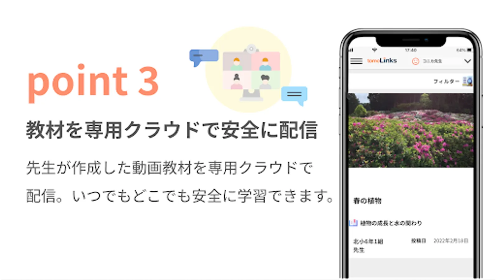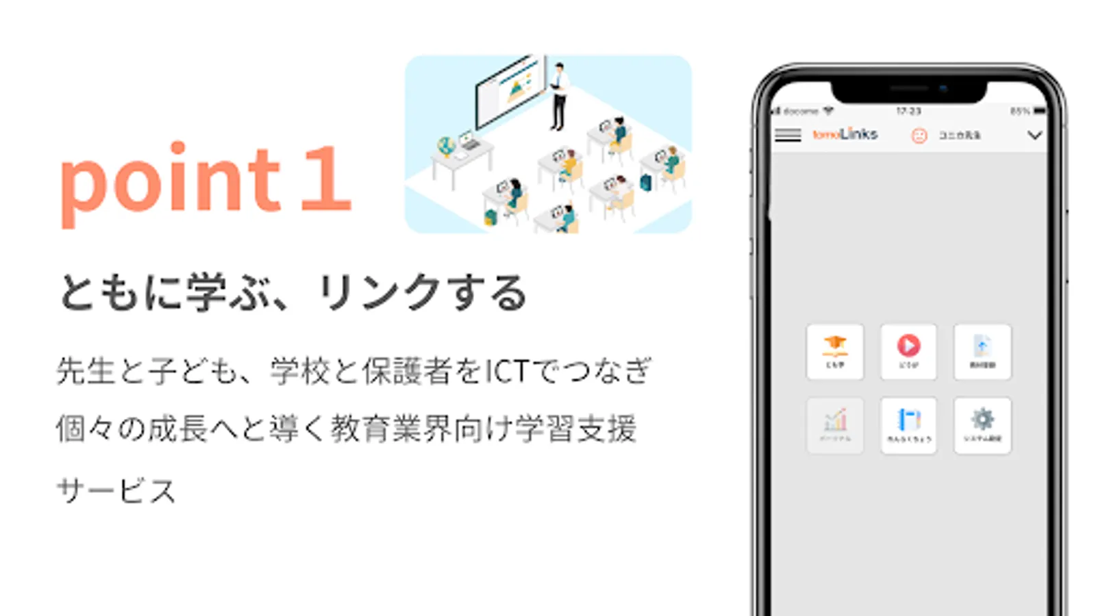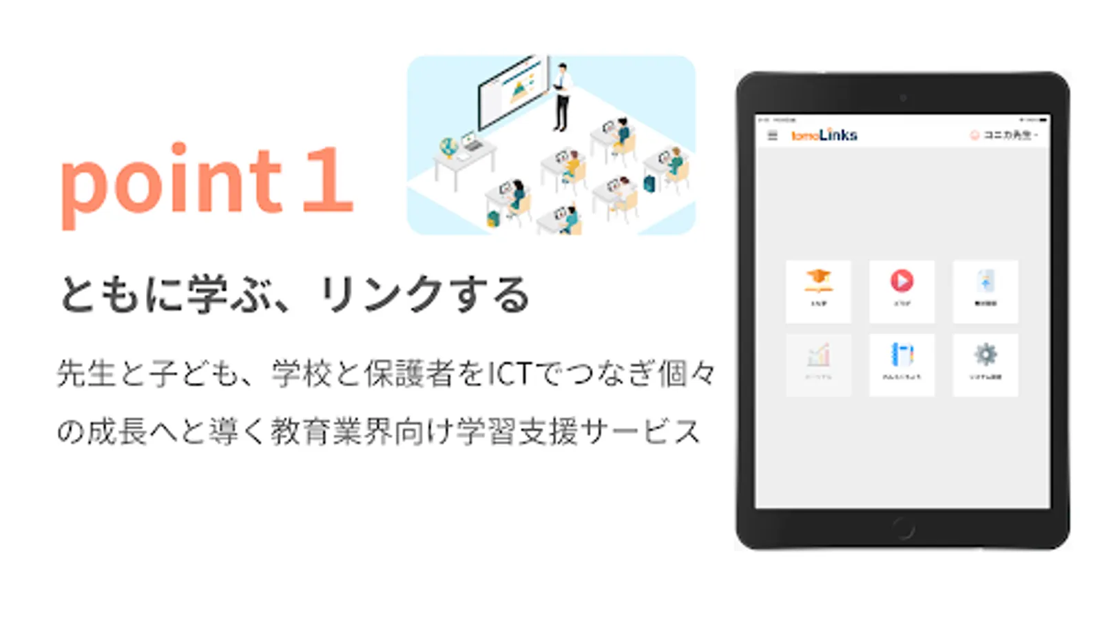 tomoLinks is a learning support service that integrates things necessary for school life, such as contact books, collaborative learning, and distance learning.