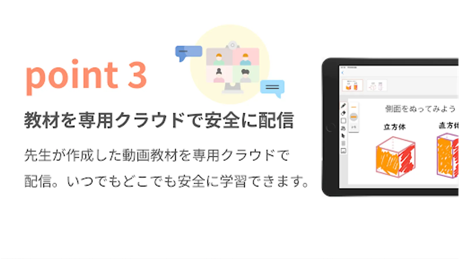 You can distribute video teaching materials and workbooks created by teachers on a dedicated cloud.