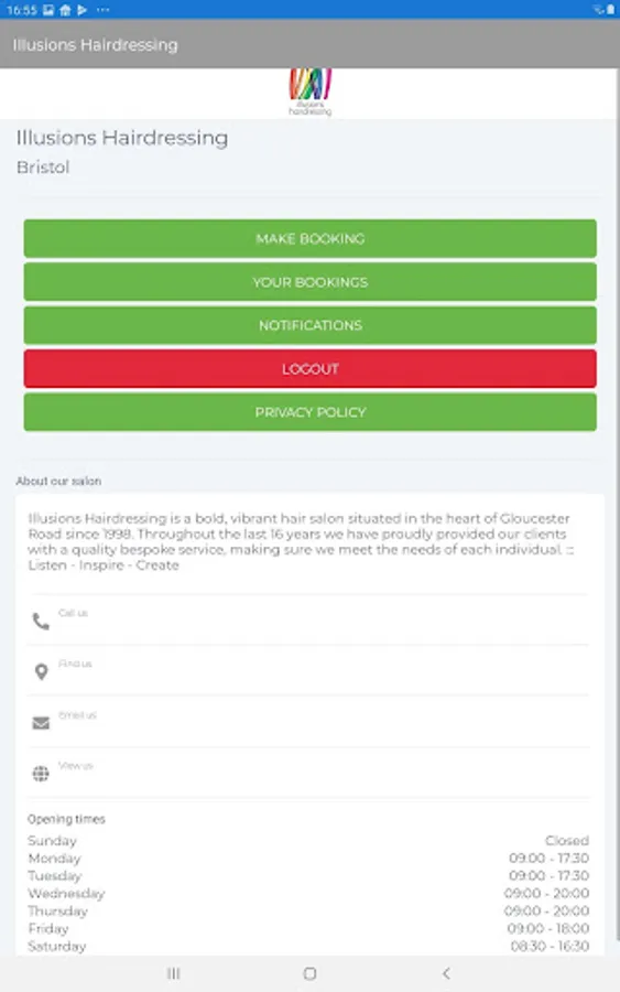 A quick way to review your bookings at Illusions Hairdressing in Bristol, on the go.