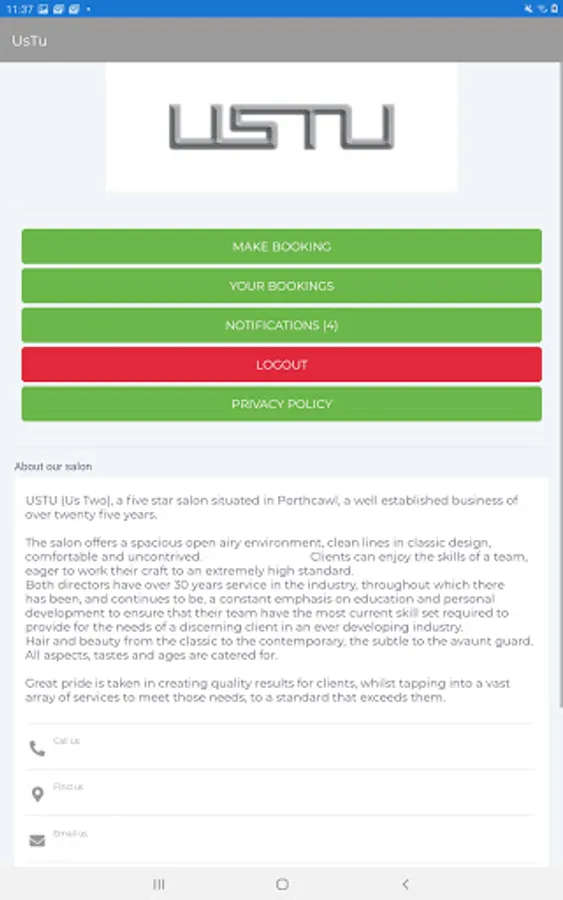 A quick way to review your bookings at UsTu in Porthcawl, on the go.
