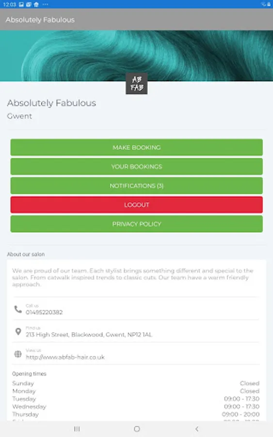 A quick way to review your bookings at Absolutely Fabulous in Blackwood, Gwent, on the go.