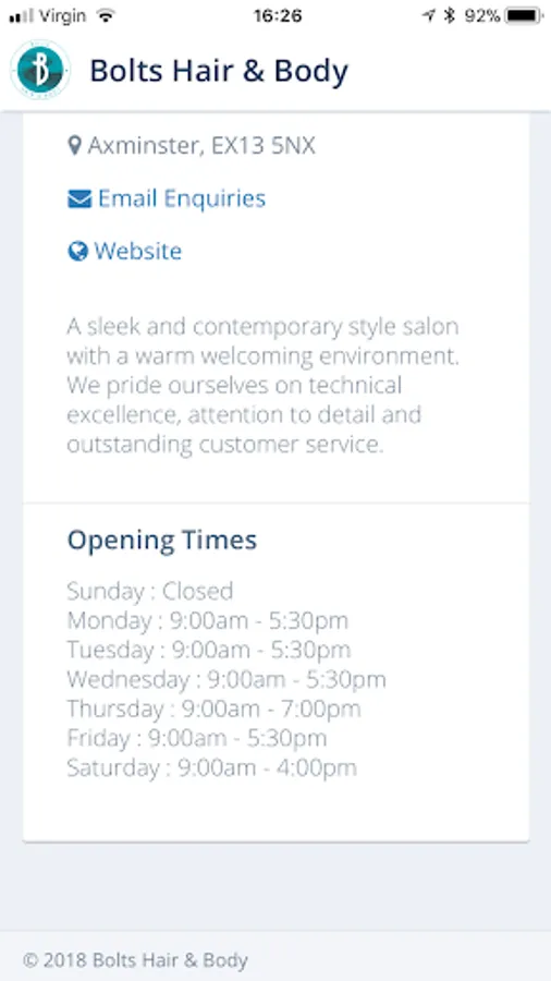 A quick way to review your bookings at Bolts Hair & Body on the go.