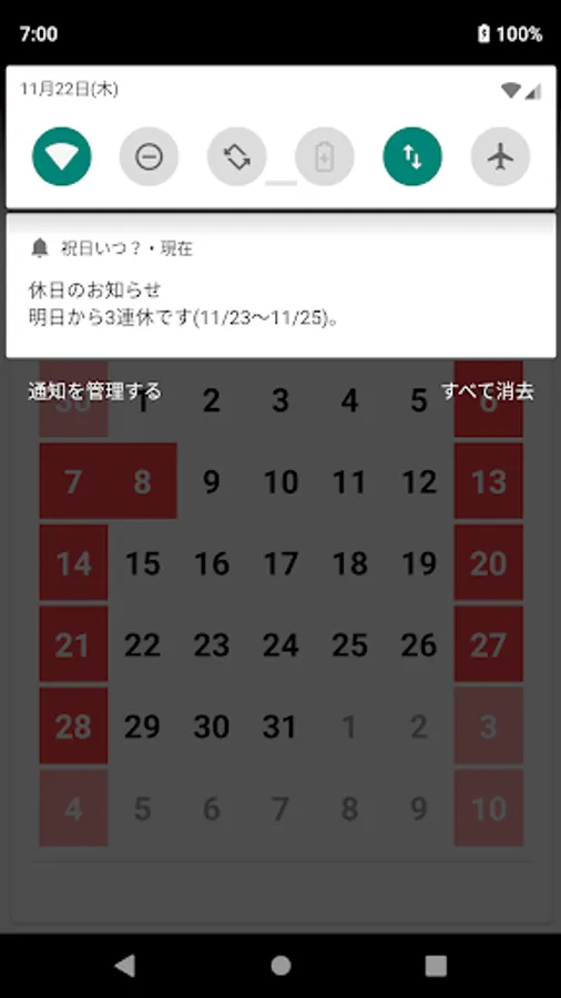 This application "When is a public holiday? Please put the notification and turn on the notification.