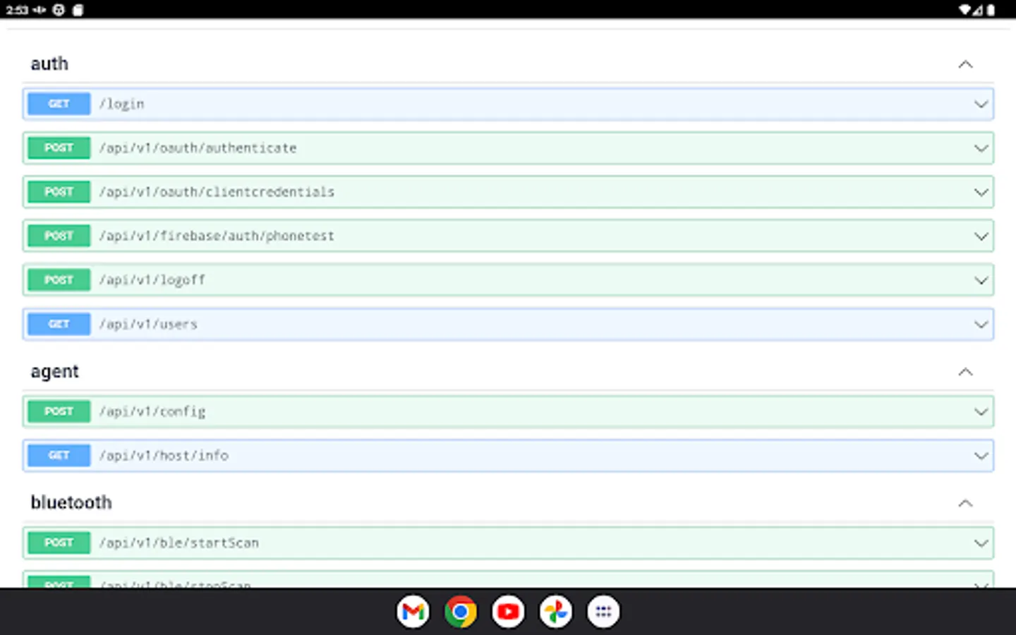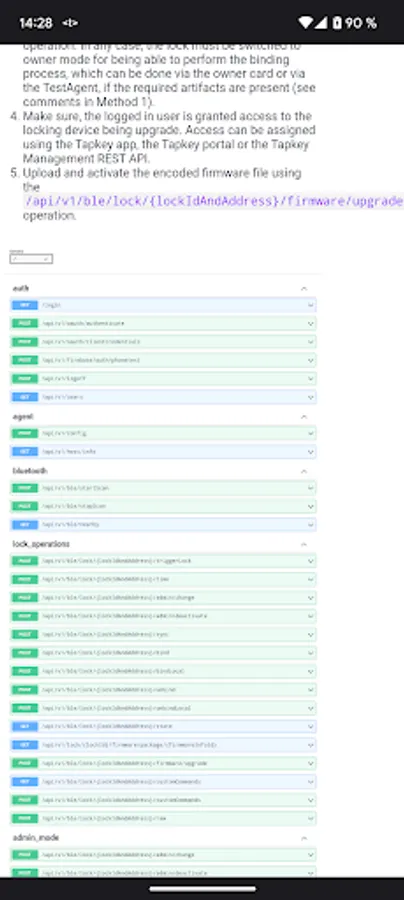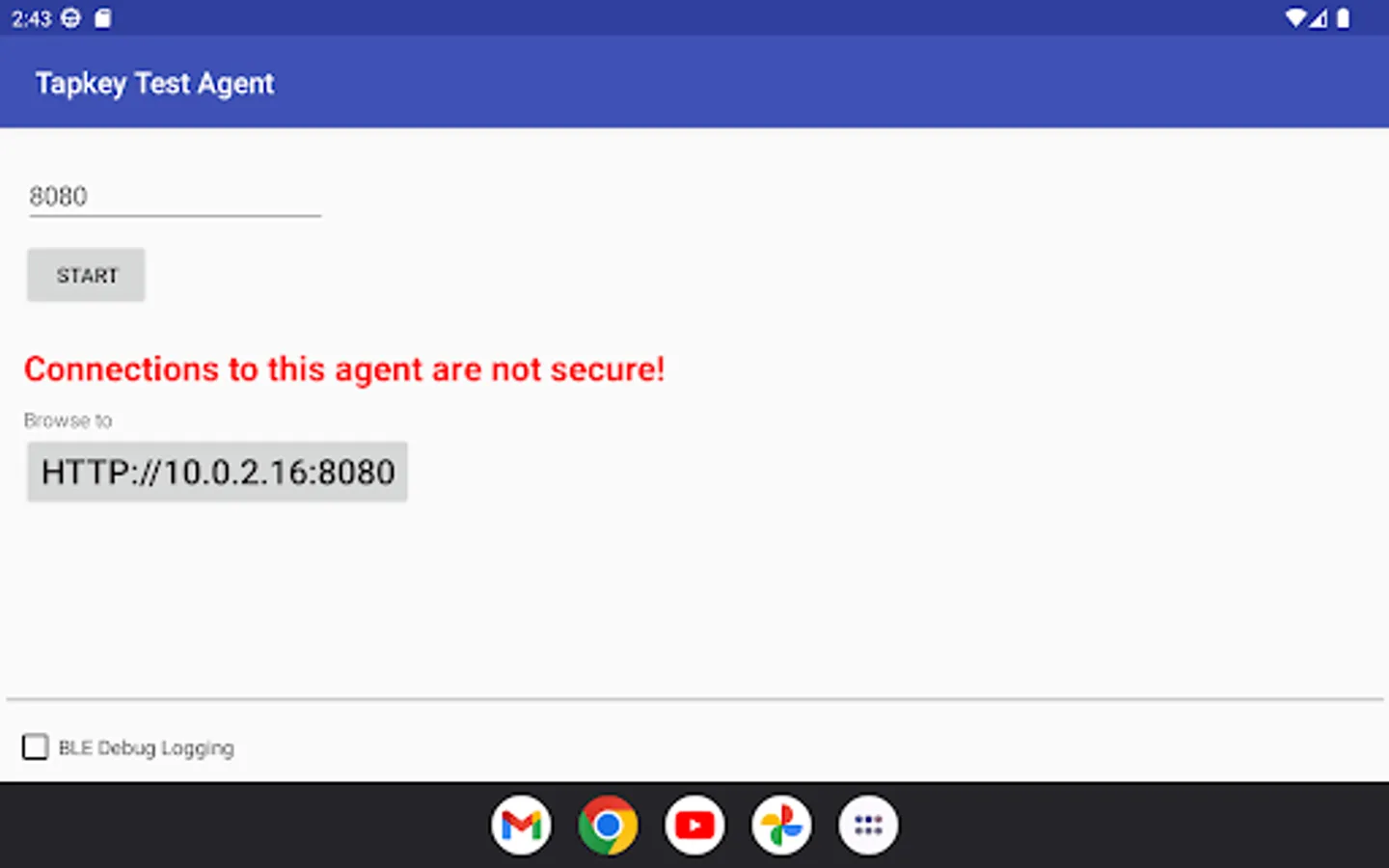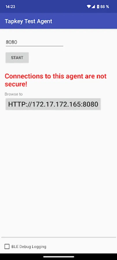 The test agent is a mobile application that offers a web interface around its REST API which can be accessed from any device on the same network. The web interface provides a way to execute commands on Tapkey locks using the Android device's Bluetooth connection. While the web interface is convenient to use and sufficient for many use cases, the REST API can be used directly to automate different scenarios.